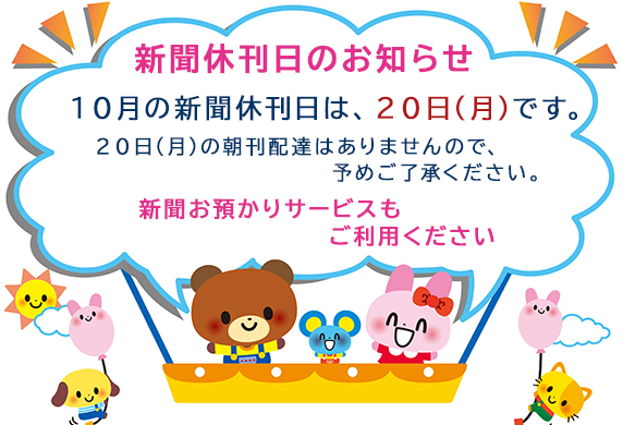 20日(月)の朝刊配達はありませんので、予めご了承ください。